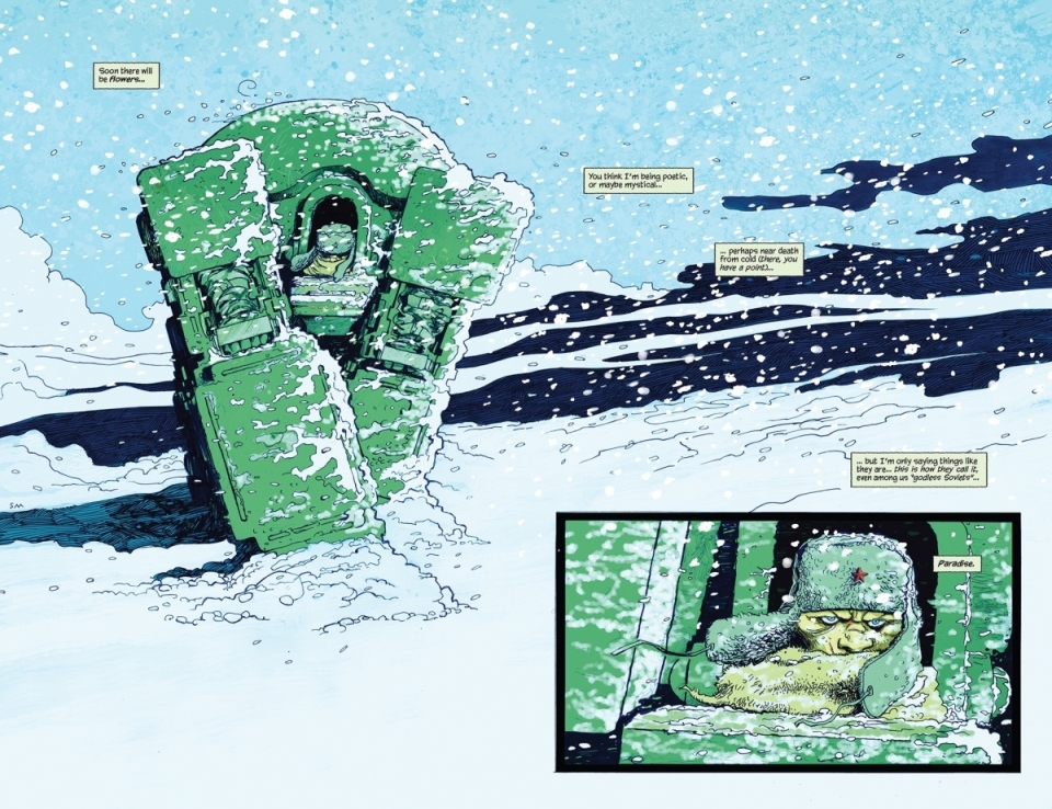 SPECIAL EXTRA-LENGTH ISSUE! In the burning deserts of Afghanistan, Platonov confronts Azra about her secrets and discovers her grand plan! But what will he do with what he learns? Then, in the frigid tundra of Siberia, the Iron Star seeks out an old ally for help. But something is terribly wrong with THE COLLECTIVE MAN!