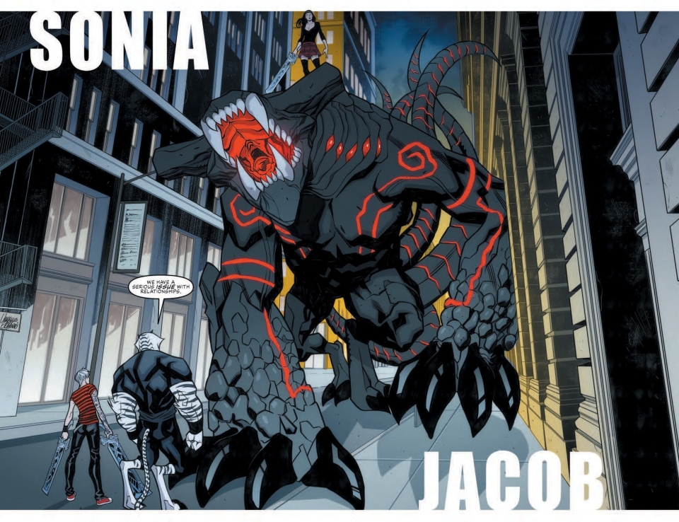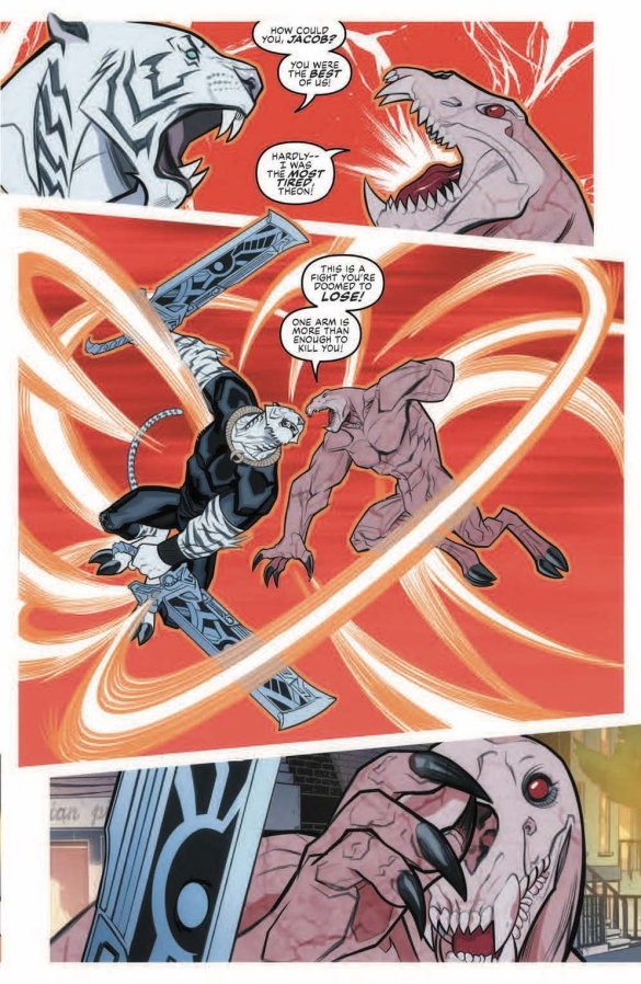 Bearing the weight of grief and betrayal Noah and Theon find themselves a weakened but final bulwark against the Great Old Ones in this concluding clash with a giant kaiju in the heart of Manhattan! Cover-to-cover action courtesy of DAVID MESSINA!