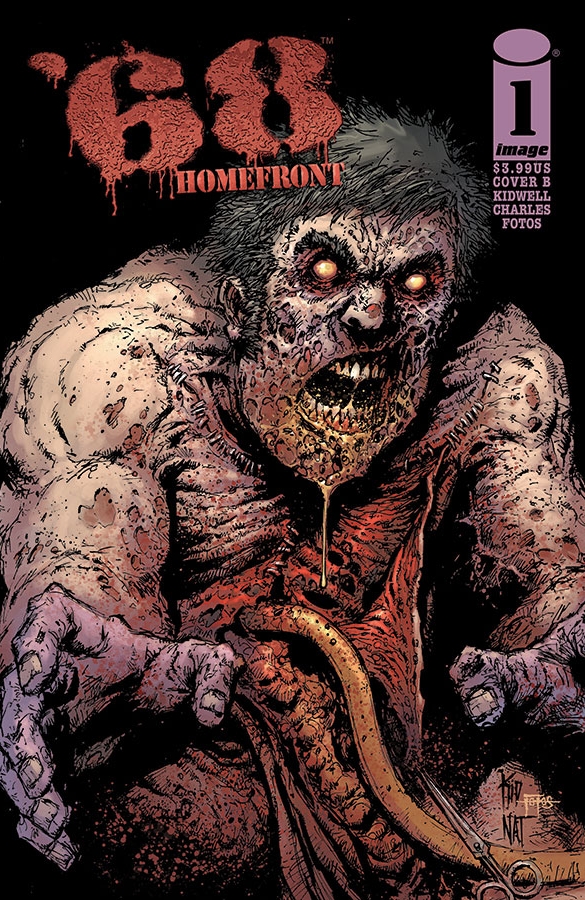 In 1968, the horrors of the Vietnam war invaded every American living room. On February 13th of that year, a new war began, bringing horror...and hunger home to stay. '68: HOMEFRONT returns the series to the American heartland and the small, sleepy town of Harbinger, Pennsylvania (home of the Heralds) in the first two-issue story arc, "'68: PEECE AND LOVE." Fresh accident victims sit up on morticians' slabs, a busload of visiting athletes rises from wet red asphalt to become an army of the damned, and Jenny Love--homecoming queen, cheerleader, and girl next door--prepares to reveal her deepest secret to the world. A secret in the form of leather-clad town bad boy, Johnny Love.