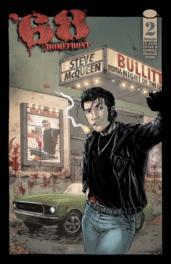 The winter snows run red and the northern lights shine on the dead as ’68: HOMEFRONT travels to Black Falls, Canada for the opening chapter of the all-new two-issue story arc "DODGERS." Doug and Bobby Hacker, twin teenagers running from the draft, running from the specter of death in Vietnam, find more than they bargained for as slavering sled dogs, rotting Mounties, and a vicious, desperate mountain man bring the undead contagion to the frozen north.