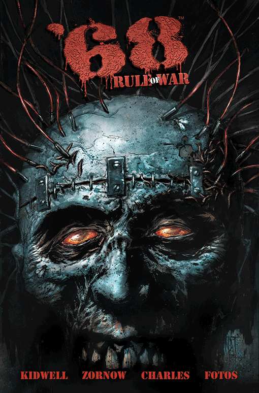 The Vietnam War is over, but CIA Special Agent Declan Rule’s war has just begun. With the vicious, well-trained German Shepherd Nero at his side, he will journey deep into the humid, blood-soaked hell of Cambodia in search of a madman, a demented neurosurgeon bent on the creation of a hard-wired army of the weaponized, radio-controlled undead whose mad plans murdered Rule’s only son. Collects ’68: RULE OF WAR #1-4 &’68: HALLOWED GROUND