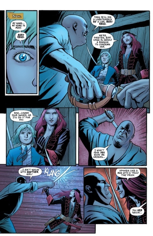 The adventures of pirate queens Anne Bonny and Mary Read might be over before they begin, as a murderous mutiny sweeps "Calico Jack" Rackham’s crew, forcing Anne and Mary to flee for their lives. Can they survive on the high seas long enough to plot their revenge and gather their own crew?
