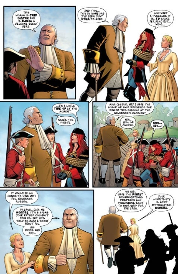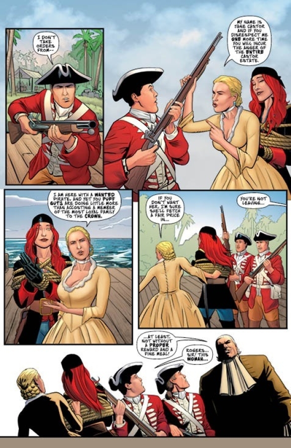 Pirate queens Anne Bonny and Mary Read, along with their all-female crew of buccaneers, are caught between the devil and the deep blue sea as both their former pirate partners and the might of the British Empire close in on them. As the Battle of Nassau rages with cutlasses and cannons, where do the loyalties of Calico Jack Rackham lie? Will Jack be Anne and Mary’s savior or their doom. Writer Stephanie Phillips (Butcher of Paris, Heavy Metal) and artist Craig Cermak (Voltron) continue their pirate adventure!