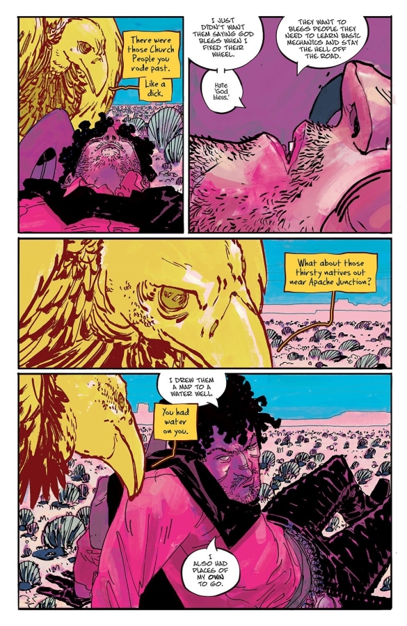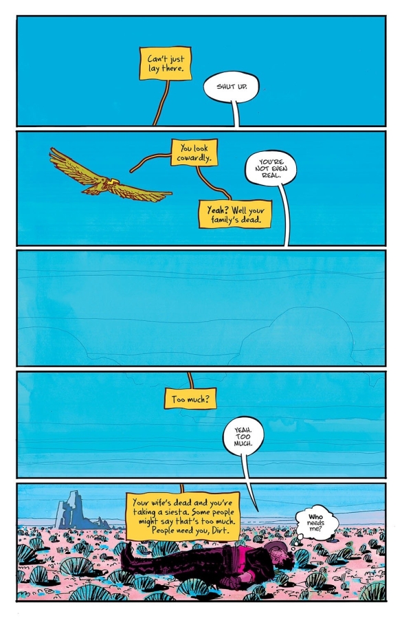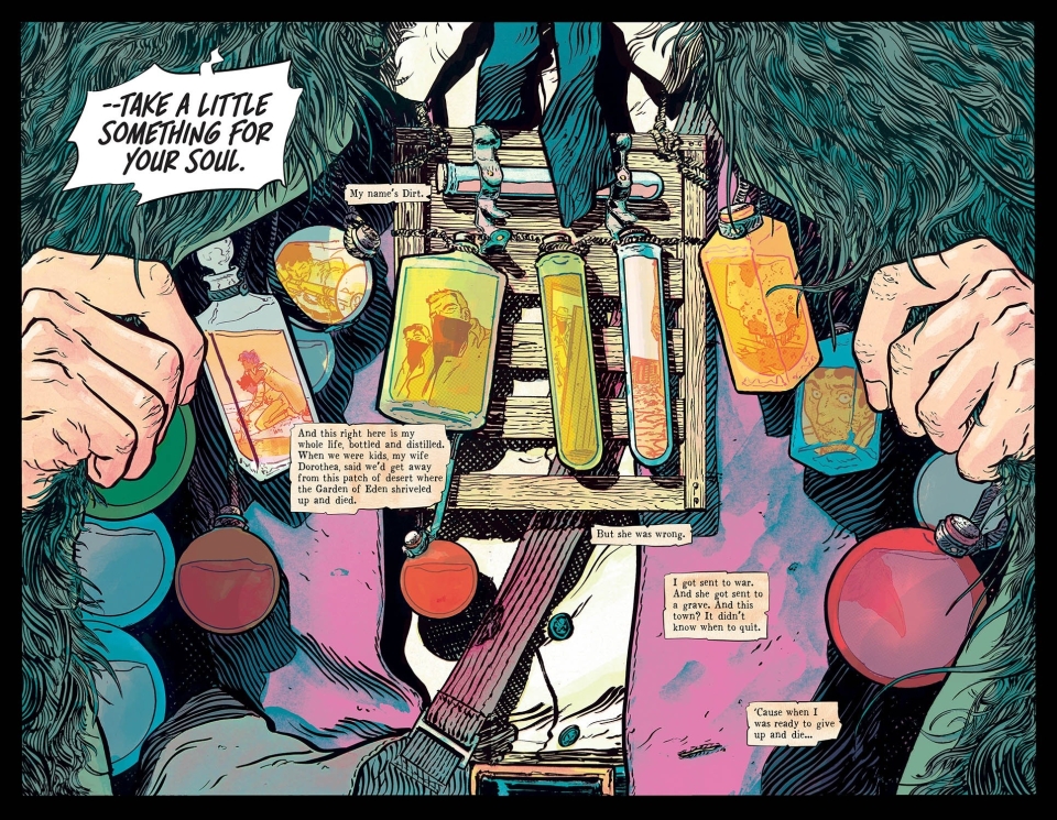 The hit team behind THE FEW and THUMBS returns with an all-new WILD AS HELL miniseries! Writer SEAN LEWIS (KING SPAWN), artist HAYDEN SHERMAN (Wasted Space), and rock-star letterer HASSAN OTSMANE-ELHAOU introduce a world where Deadwood-style Westerns collide with the fantasia of NEIL GAIMAN in the story of Dirt, a man seeking vengeance for his murdered wife with nothing but a talking vulture to prod him on. ABOVE SNAKES is a fast and furious explosion of Western tropes and American vengeance that explores where our rage can take us.
