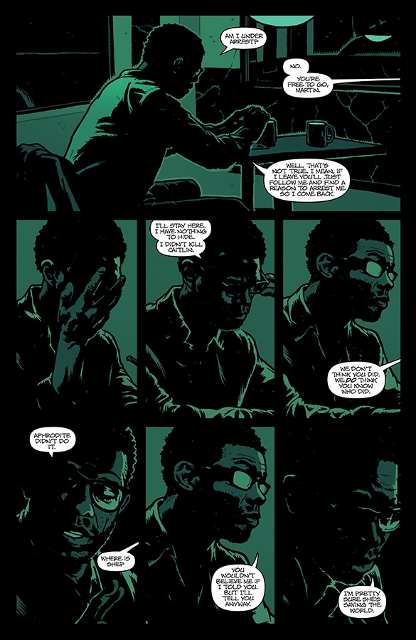 The final battle with Basilisk will test Martin, Aphrodite, and Hui-Men. Aphrodite may not be a human being, but she can die like one… and that just might be the peace for which she’s been searching.