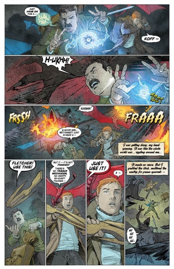 While under attack by skitterjacks, Fletcher learns some secrets behind his flight magic that Aero Corps has been keeping from him. But it may all be for naught when he and Guy discover the true identity of the Blood Emperor.