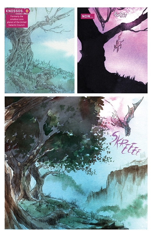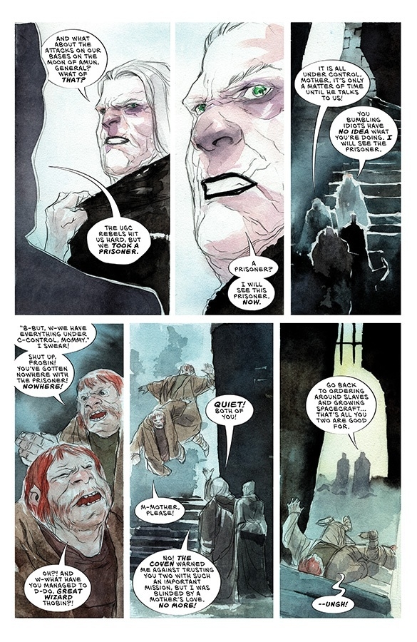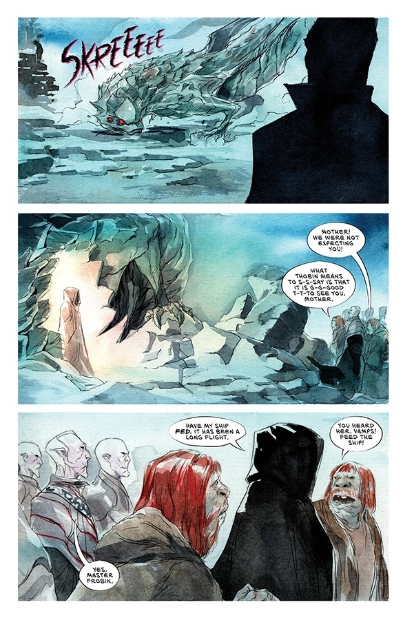 "THE HAUNTED GALAXY," Part OnePowerhouse creative team JEFF LEMIRE and DUSTIN NGUYEN launch an all-new sequel series to DESCENDER with the launch of ASCENDER! Set ten years after the conclusion of DESCENDER’s storyline, magic has taken the place of machinery and the rules are very different indeed… Mila, the daughter of Andy and Effie from DESCENDER, spends her days exploring the lonely wilds of the planet Sampson and trying to stay out of the clutches of the evil disciples of the all-powerful vampire witch known only as Mother. But, like her parents, Mila doesn’t like to play by the rules, and when a certain robot pal of her dad’s shows up, nothing will ever be the same! With all the scope and heart of the sci-fi classic DESCENDER, LEMIRE and NGUYEN reunite to take readers on an unforgettable fantasy quest!