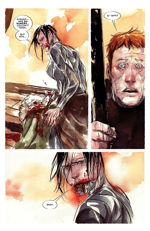 "THE DEAD SEA," Part FiveIn this stunning story arc conclusion, Andy and his wife-turned-vampire Effie are locked in a life-or-death struggle…with each other. Meanwhile, their daughter Mila encounters the familiar face of a friend thought long gone!