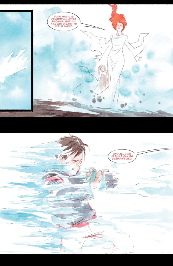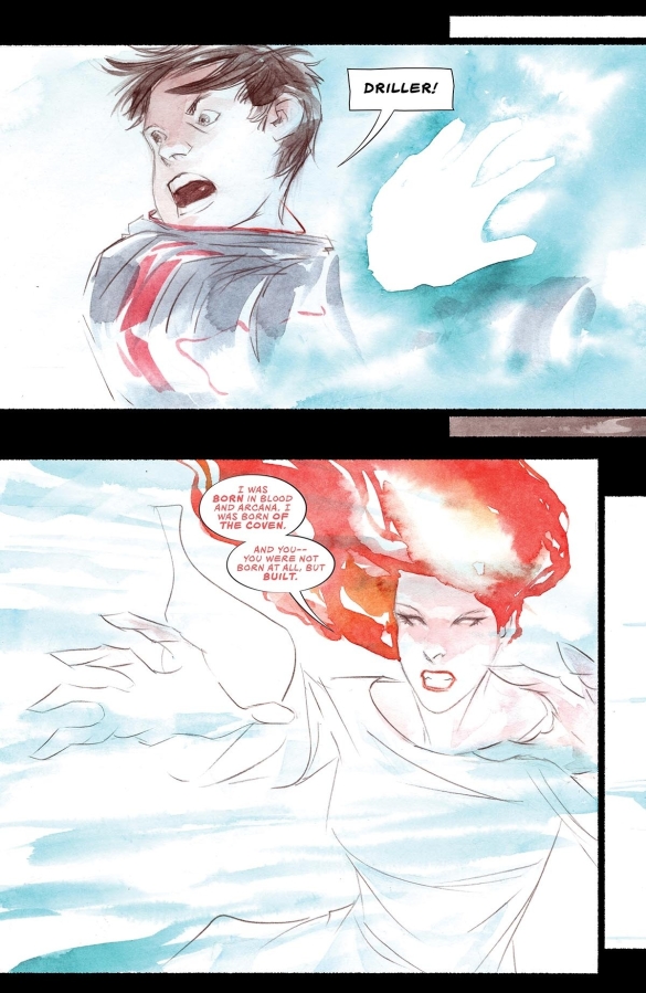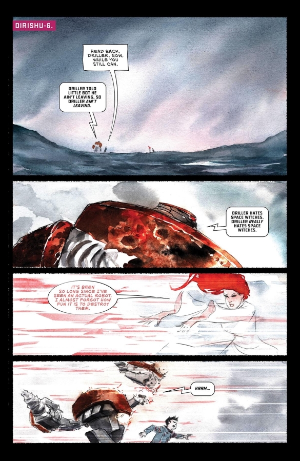 PENULTIMATE ISSUE! Mila takes a pivotal step forward as magical blows are traded on Dirishu-6, where our heroes find themselves surrounded on all fronts.