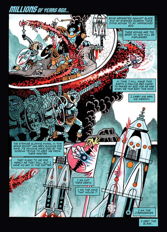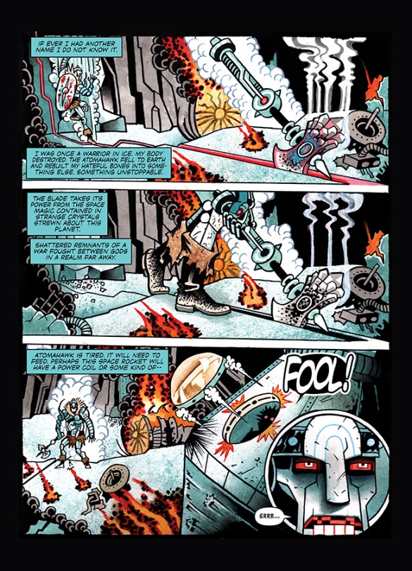 Behold, puny earth things! A deluxe, oversized collection of the story originally serialized in Heavy Metal magazine, this is the complete adventure of the Cyberzerker and his mighty Atomahawk! Join them on their quest to free their imprisoned God, and find out why GRANT MORRISON calls it: "A screaming black hole feedback squall of death metal Kirby-kozmik energy spinning straight towards your prefrontal cortex. DONNY CATES and IAN BEDERMAN forge a stylish, super-heavy 21st-century mythology of blood, sentient steel, and rebel circuitry. A razor-nova of explosive writing and searing visuals that bury themselves deep in your skull. ATOMAHAWK REX!"