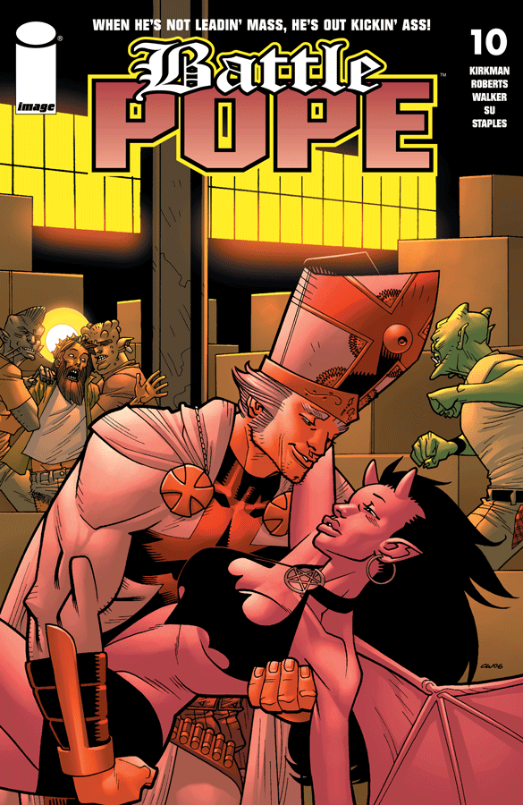 written by ROBERT KIRKMAN art by MATTHEW ROBERTS, CORY WALKER, E.J. SU &VAL STAPLES cover by CORY WALKER & STAPLES In this chapter Battle Pope learns to deal with his new celebrity status, stops a bank robbery, sleeps with a major villain, and has a hell of a nightmare! Beginning a new direction for Pope and his sidekick Jesus. An excellent jumping on point for new readers! (Yes, we mean YOU!)