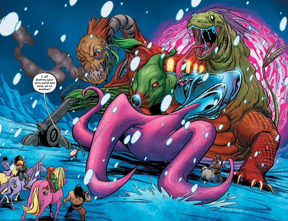 "WAR ON CHRISTMAS," Part Five The Queen of the Northland Elves has found a dangerous new weapon and she isn’t afraid to use it! The last Kinmundian, his battlepug, and all their friends must stop her before she conquers our universe (and others)! Don’t miss the stunning conclusion of this story arc that promises to completely change the world of BATTLEPUG as we know it!