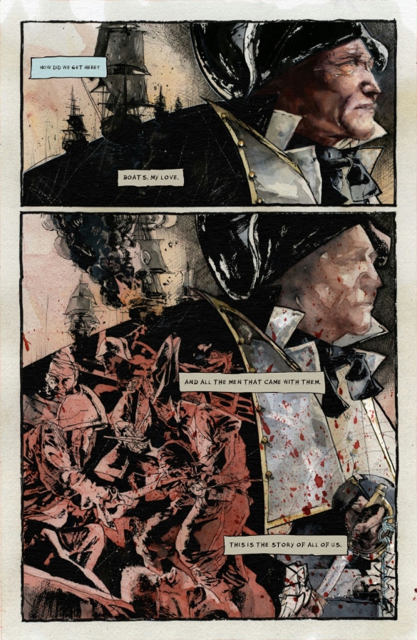 Rendered in stunning watercolor by artist JONATHAN MARKS BARRAVECCHIA, it's a gorgeous story of the blood spilled to make countries. And what's cooler than bears, pirates, vikings, and queens???
