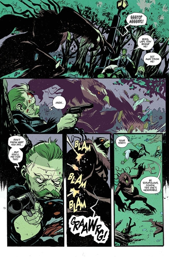 An evil force stalks the streets of Harlem as Berg and Cullen face off against a deadly creature that may be more than they can handle. Meanwhile, in Mississippi, a mysterious stranger unleashes furious retribution in the name of justice. BITTER ROOT Cover As by SANFORD GREENE will be connecting through the first story arc.