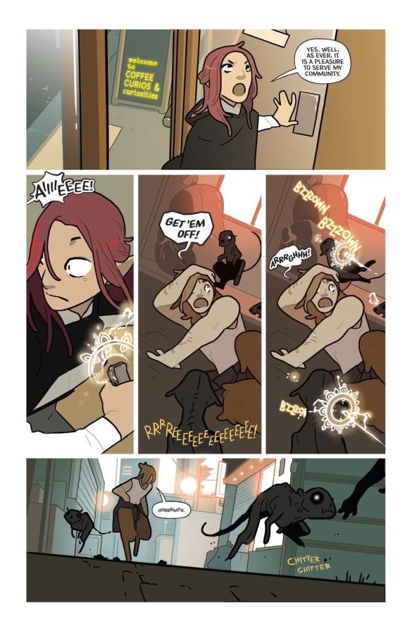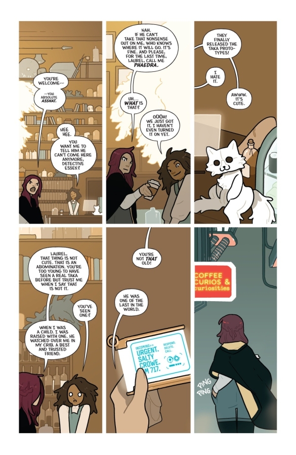 SERIES PREMIERE Eisner Award-winning writer KELLY THOMPSON heads to Image for the first time with BLACK CLOAK, an all-new series with artist MEREDITH McCLAREN! Blade Runner style mixes with SAGA-esque drama in a delectable fantasy/sci-fi blend as two Black Cloaks try to solve the murder of a beloved prince in Kiros, the last city in the known world, before his murder tips the city into war. The mystery begins in a spectacular TRIPLE-LENGTH FIRST ISSUE for $4.99!