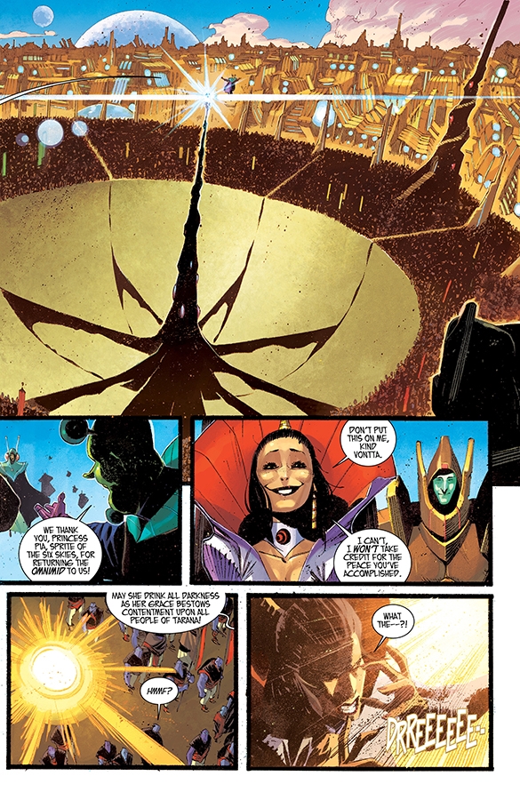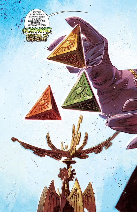 In a hotheaded attempt to rescue his daughter, Grant McKay threatens to unravel a peace treaty between three godlike races, putting the entire Eververse at risk! Big changes, bigger action, and a stunning climax that will shake the world of BLACK SCIENCE to its very foundations!
