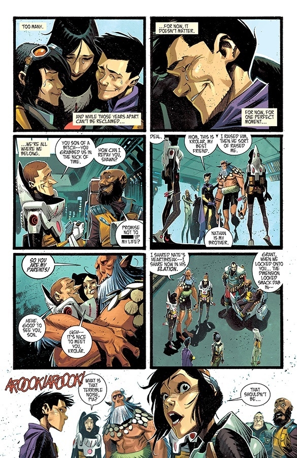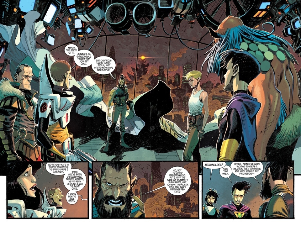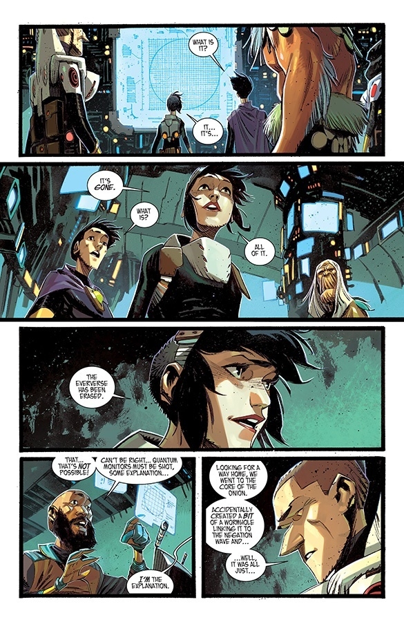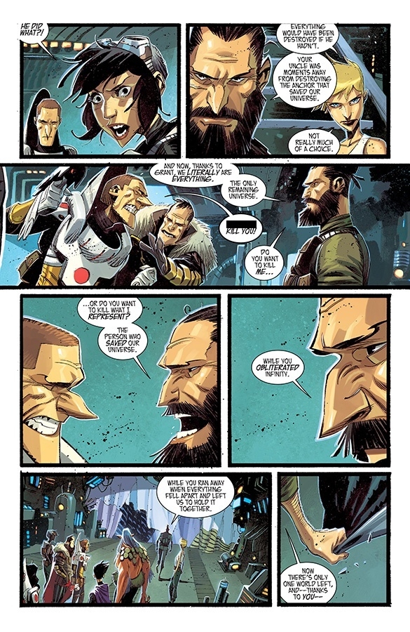 "NO AUTHORITY BUT YOURSELF," Part One (of Four) His entire life, Grant McKay fought against conformity, preferring anarchy to submission. Now, with reality reeling from the aftershocks of the Pillar, every choice Grant makes might be his last. Dimensionauts steel themselves for their final adventure as RICK REMENDER and MATTEO SCALERA bring their seminal pulp science-fiction epic to a mind-shattering finale.