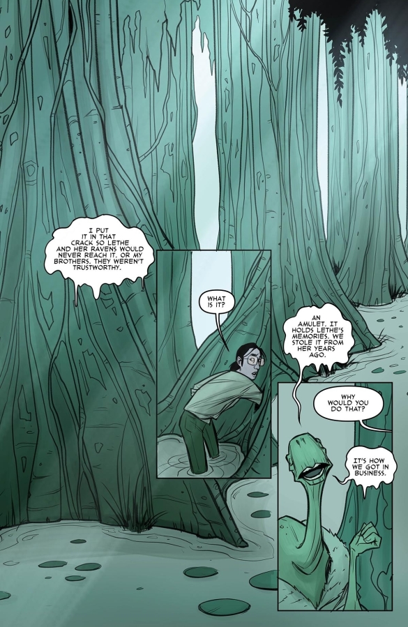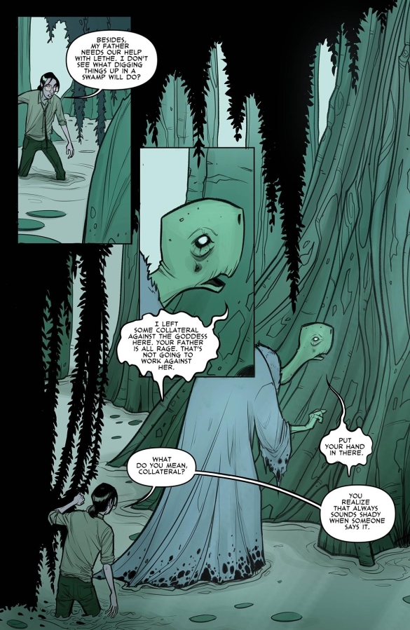 SEAN LEWIS (DC Future State's Superman of Metropolis) and rock star artist CAITLIN YARSKY return with the final arc of their critically lauded series. Benton has come face to face with Lethe on her home turf where memories are weapons. As Benton is literally tortured by the past, his son travels with the god Hera through the swamps of Feral City looking for the secret that could bring Lethe down.