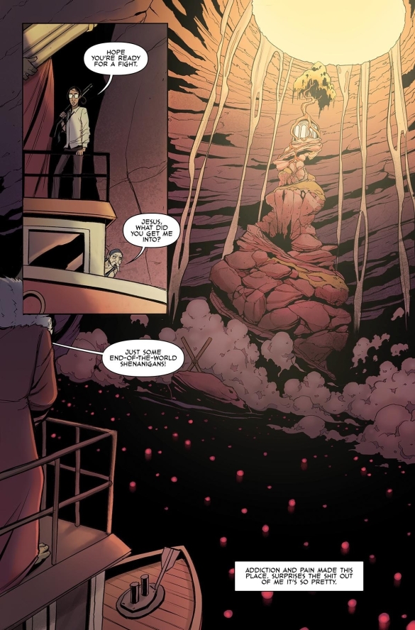 THE PENULTIMATE ISSUE!!The lauded miniseries is near its completion. LETHE battles to the end with BENTON and PERRY. While over the mountains, a new and final threat emerges. The townspeople and victims of Feral City.