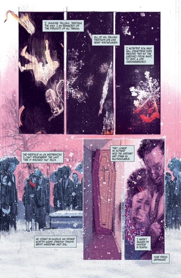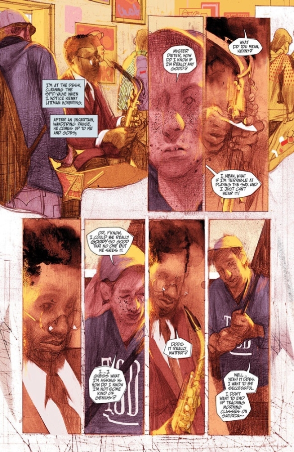 The dark and haunting portrayal of a young musician’s pursuit of creative genius—the monstrous nature of which threatens to consume him as it did his predecessor half a century ago. From creators RAM V (Grafity’s Wall, These Savage Shores) and ANAND RK (Grafity’s Wall), BLUE IN GREEN is an exploration of ambitions, expectations, and the horrific depths of their spiraling pursuit.