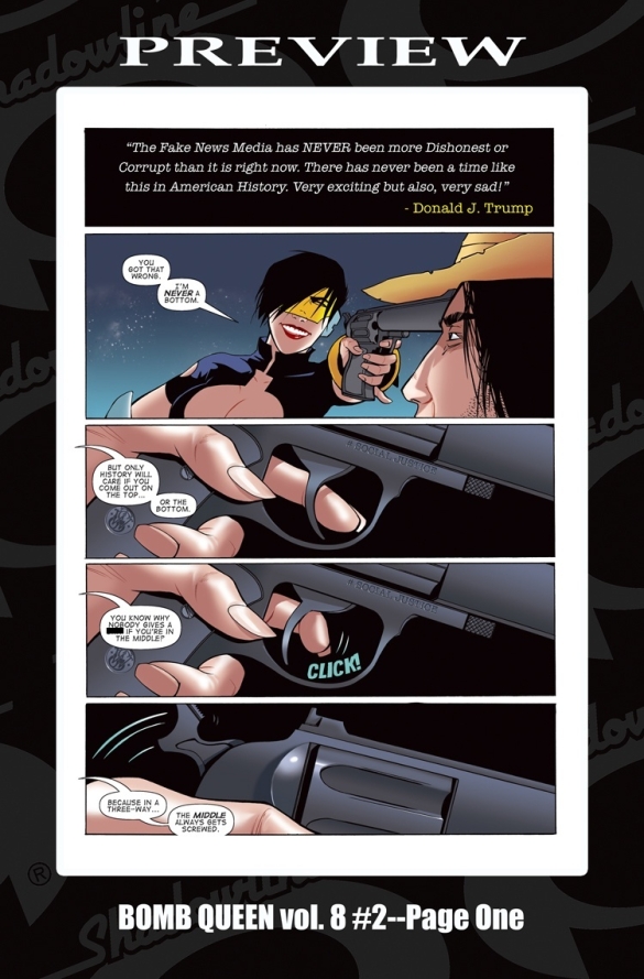 "GRAB ‘EM BY THE RALLY" Bomb Queen escapes one dangerous trap only to drop into another when she makes a surprise appearance at Trump’s campaign rally, but the shocking results make her motives suspect.