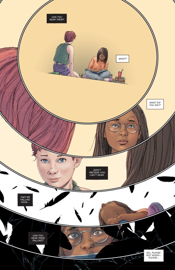 From the acclaimed creative team behind GIDEON FALLS, PRIMORDIAL, and THE PASSAGEWAY comes a new series in the bold and ambitious shared horror universe of THE BONE ORCHARD MYTHOS.Trish and Jackie are best friends and avid gamers. But when the line between reality and their fantasy world is blurred by an evil darkness, can they be the heroes of their own story?TEN THOUSAND BLACK FEATHERS is the newest entry into THE BONE ORCHARD MYTHOS from LEMIRE & SORRENTINO! This universe will feature self-contained graphic novels and limited series about the horrors waiting to be discovered within the Bone Orchard.