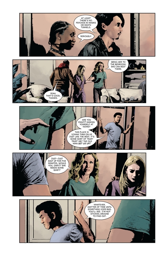 Secrets are revealed amongst the neighbors as they continue their descent between floors, but when the group attempts to find a way out of the tunnels, they'll find answers that defy logic and terrors beyond reality.