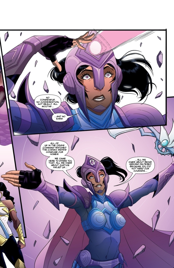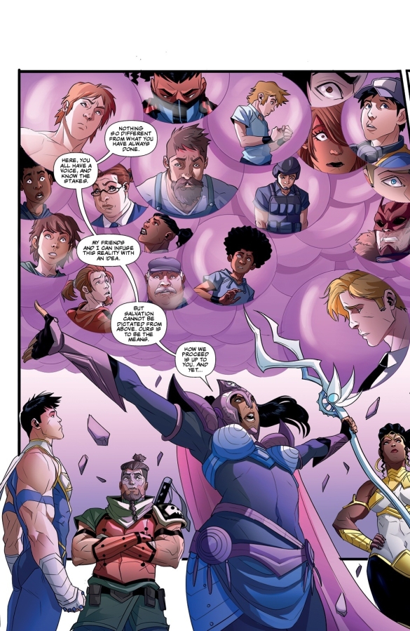 All this time, the Crisis Command has fought to undo what’s been done. From the death of empathy, to the passage of the American Individuality Act, they’ve tried to preserve what they thought was right, what the world needed. But with all of existence in the hands of the world’s population, in OUR hands, thanks to the power of a word, will the ideas of the past save us? Or will they die to give birth to something new? Superheroes haven’t saved the world, so the Crisis Command, and all of us, have to be something better.