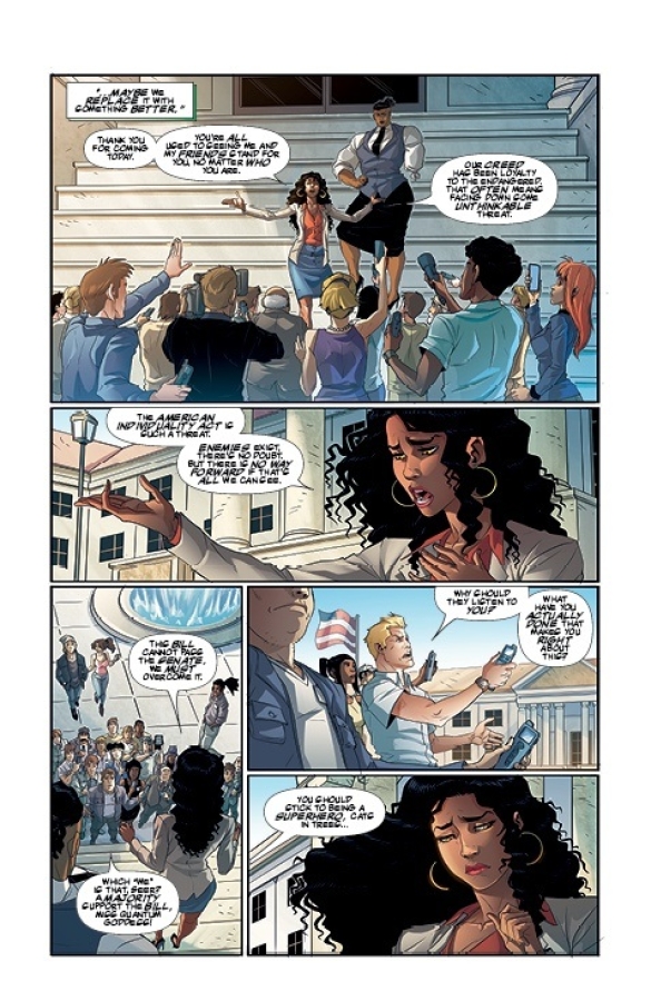 Originator hunts the psychotic radio-sapiens known as the Social Callers, but is she shutting them down or joining them? With empathy in rigor and Frontier vanished, only superhuman logic can keep the Crisis Command fighting against the American Individuality Act and the Extinction Society’s next move!