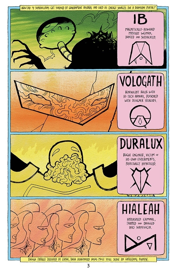 "TENDER LIVING"This prelude to "THE OCHIZON SAGA" pits our crew against a destructive quartet of villain-husks who help usher in a cruel dynasty of cosmic proportions. How do you even fight that with a fist, a gun, or malfunctioning armor? End times aren’t nigh, they’re here; COPRA is swimming in them.