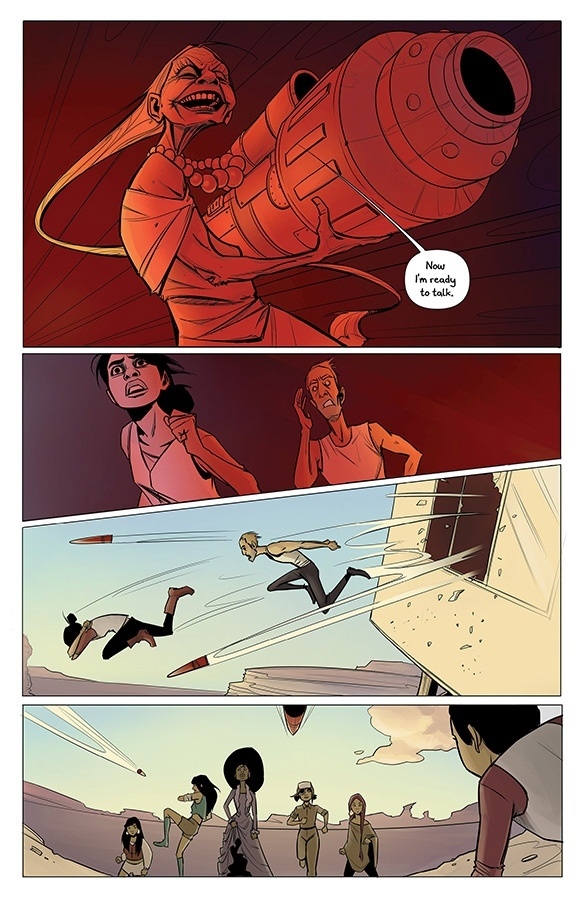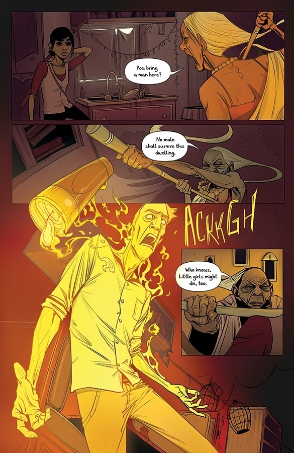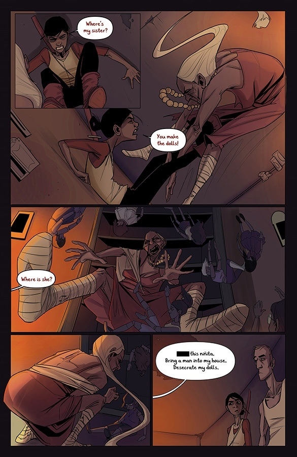 The revenge fantasy continues! Faced with Abuela and the old women that originally warred with the Werewolves, Red and Coffey discover a history of this ancient war and of Red's lost sister, Maria. All the while, Adlin Industries continues to torture the werewolf Seff in pursuit of the greatest weapon imaginable.