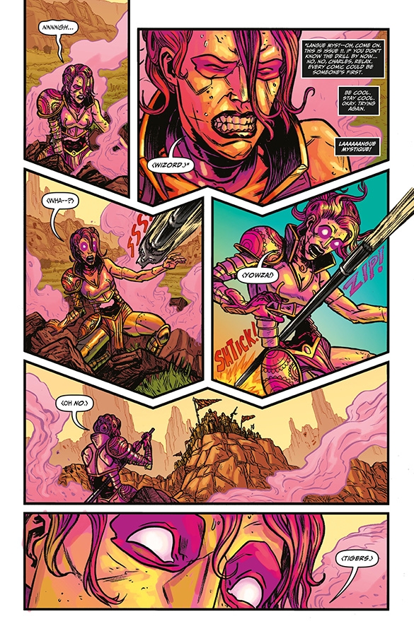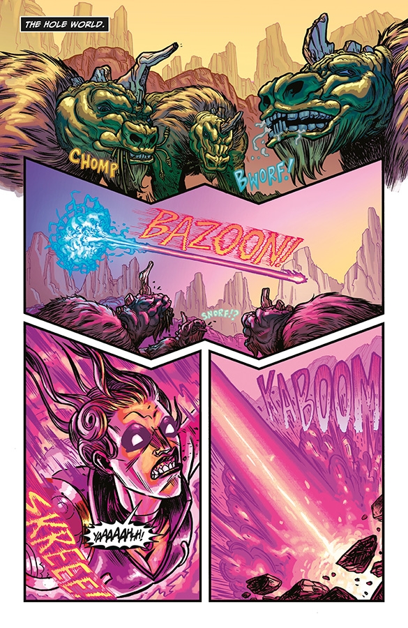 "THE HOLE DAMNED WORLD," Part One The third arc of CURSE WORDS starts here! Wizord has won a mighty victory, but he's too busy to celebrate—his little pal Margaret has gone missing, and he's gotta find her before it's too late! Meanwhile, a deep dive into the history of the strange, savage Hole World begins, with the evil demon Sizzajee as your tour guide.