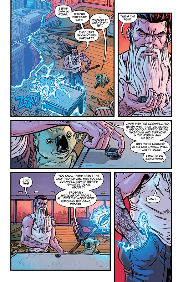 "THE DEVIL’S DEVIL," Part Two Wizord, New York City’s beloved sorcerous protector (at least that’s what he wants you to think) has done something TERRIBLE to the city. It was sort of an accide—no. It was completely on purpose, and now he has to fix it before everything goes to hell. Meanwhile, evil wizards, including Wizord’s ex Ruby Stitch, are lining up to take him down. It ain’t gonna be pretty—but it’s gonna be MAGIC.