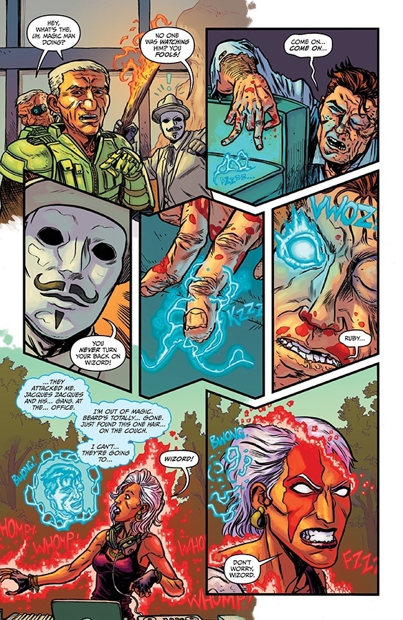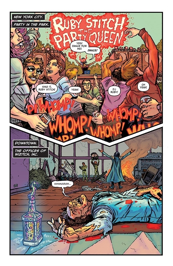 "FAIRY TALE ENDING," Part One (of Five)That’s right, CURSE WORDS is barreling to its epic conclusion—only five issues left. All questions will be answered, all spells will be cast—it’ll be just plain magical. In this issue, see Wizord and Ruby Stitch vanquish many enemies, only to face one they can’t sorcerize into submission… the truth!