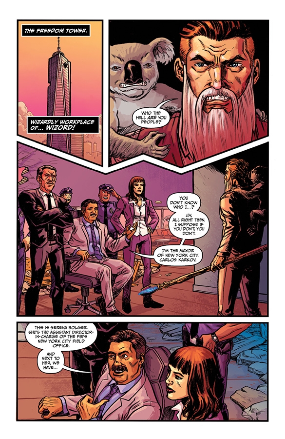 Wizord must regain his magical powers before (a) he dies and (b) the world ends, in that order of importance. To do so, he must travel to a truly horrifying place...LOS ANGELES! Meanwhile, the beautiful, terrible Ruby Stitch finally appears in our world--and she is READY TO RUMBLE.