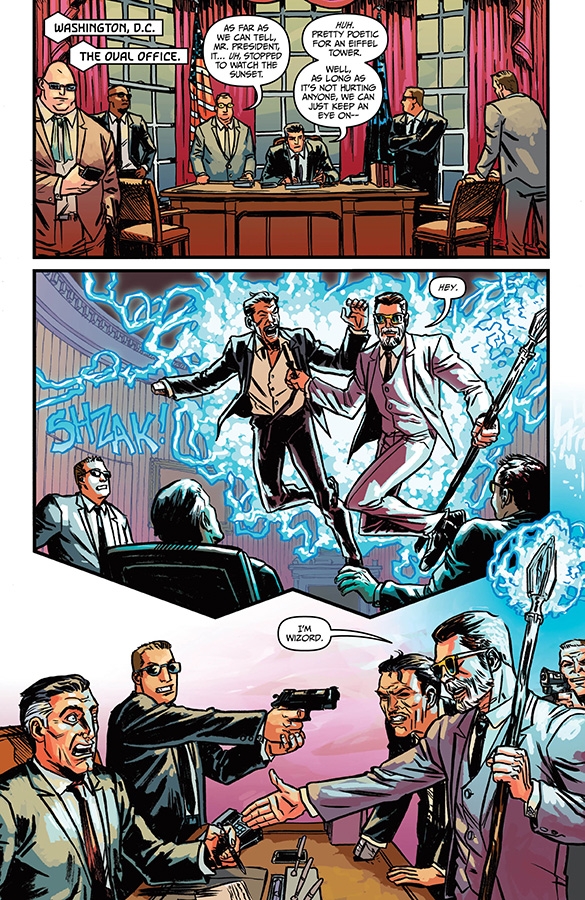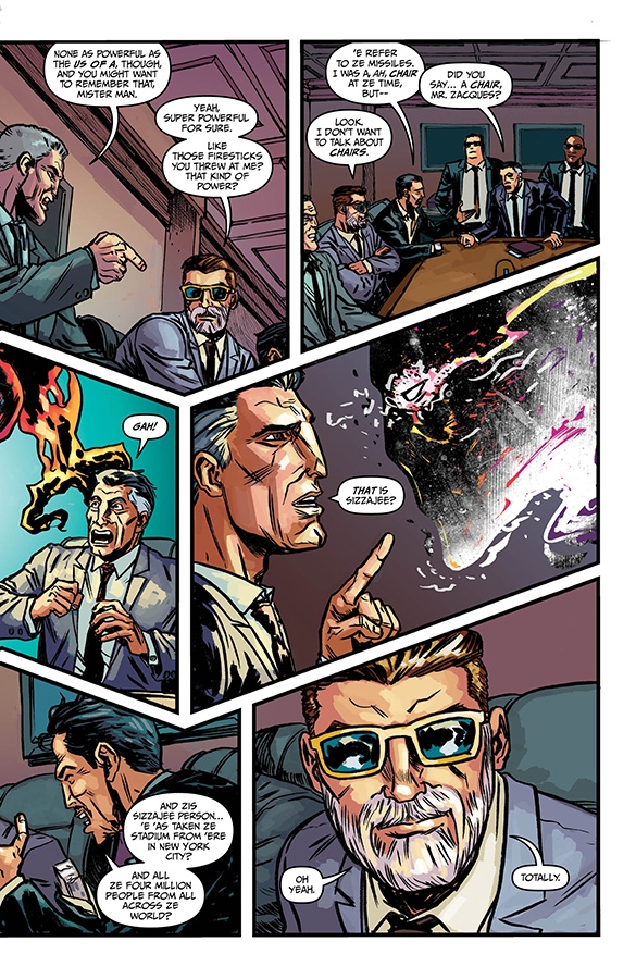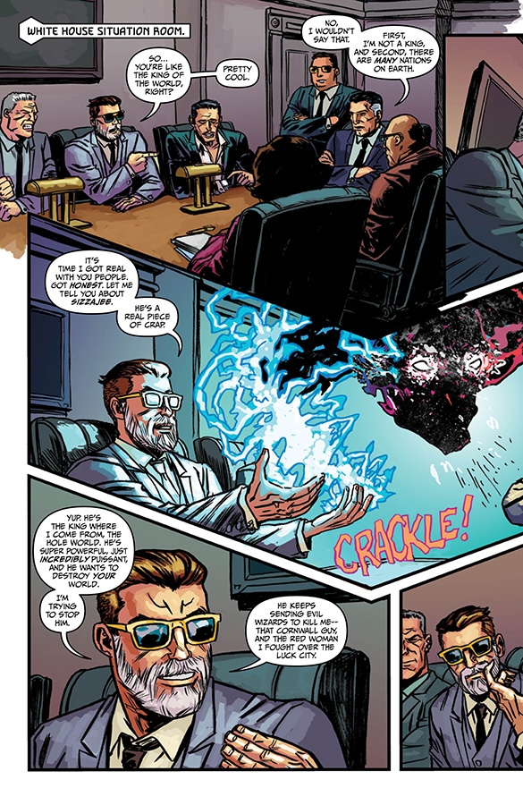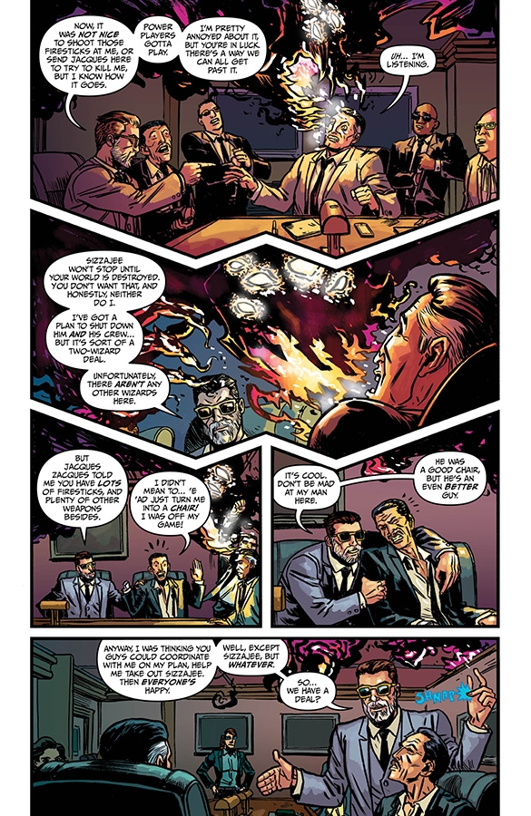 "EXPLOSIONTOWN," Part Three Wizord continues his clever plot to destroy the evil demon Sizzajee, which Sizzajee doesn't even realize because he's working on his clever plot to destroy Wizord. Meanwhile, Ruby Stitch and Margaret visit possibly the most magical place on earth. It's a tour de force of wizardly wit and wisdom!