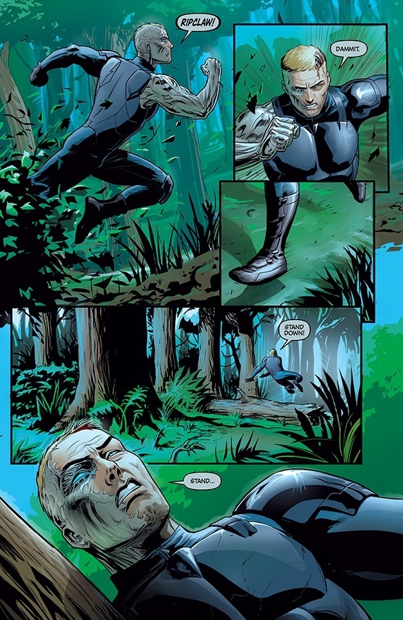 It’s the brutal man-machine hybrid Leviathan vs. Cyber Force as Morgan, Ripclaw, Velocity, and Aphrodite face off to save the fate of a country caught in the center of The New War for Technology. Who will own the future?