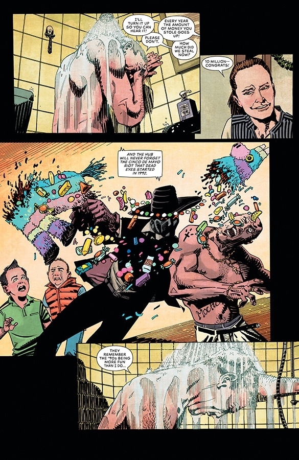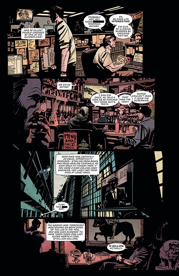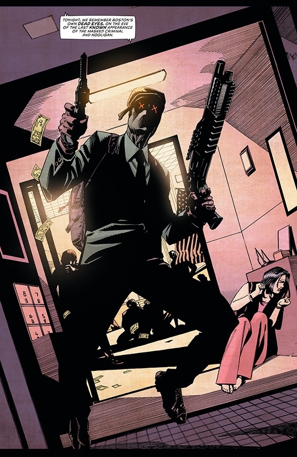 You can’t keep a good comic down.In the 1990s, DEAD EYES was a prolific stick-up man and hoodlum in Boston until he took down one last big score and disappeared. Nobody ever discovered the truth. He retired to be with the love of his life, but now he’s back in the mask to save her. No one—not his wife, the mafia, or the cops—is happy that he’s out of retirement. From JOHN McCREA, the artist and co-creator of MYTHIC and Hitman, and GERRY DUGGAN, the writer of ANALOG and DEADPOOL, comes the action, comedy, and drama of Martin Dobbs, a.k.a. DEAD EYES, the man who says he’s descended from one of the original gangs of New York City. Get on board the oversized first issue of an all-new ONGOING SERIES for mature readers.