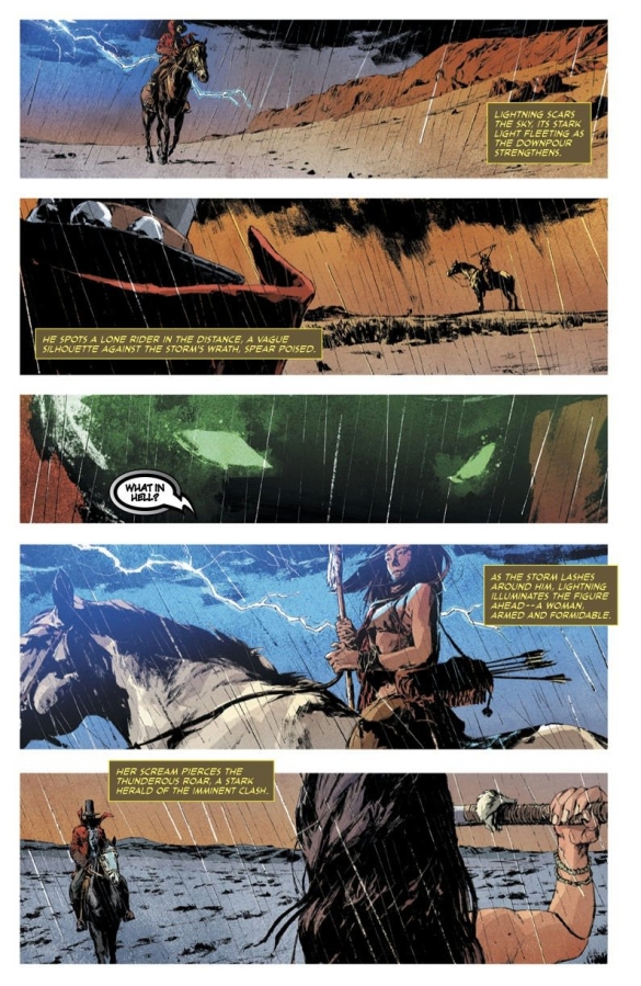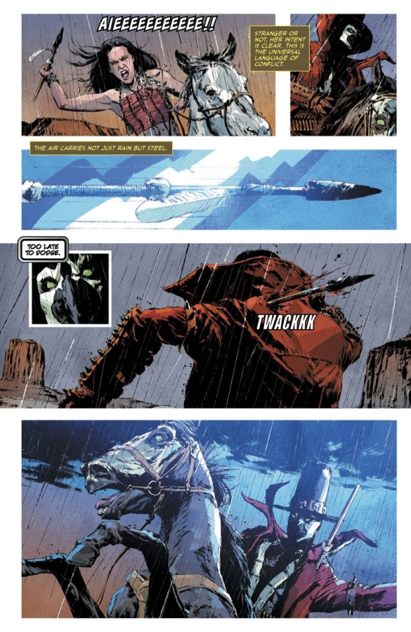 The Gunslinger, free again and riding with intent, is attacked by a stranger. Her reasons are unknown, but her purpose is clear...kill the Gunslinger Spawn!