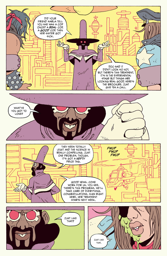 Thwarted again, Marla and Bash storm Slyther Corp Tower to face the multiverse’s deadliest force: middle management. It seems every auditor, analyst, and brand manager in the building is locked, loaded, and ready to die for their transdimensional CEO, the cobra-headed demon, Lord Slyther. It’s the most violent quarterly review in history.