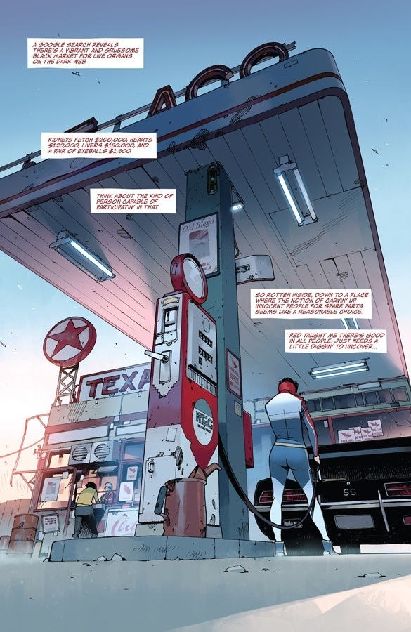 Glory has what she needs to save her dad Red’s life, but in the process she’s ticked off literally every criminal organization, the cops, AND a few psycho killers to boot. The road to freedom is wide, but it’s paved with the corpses of the foolhardy.
