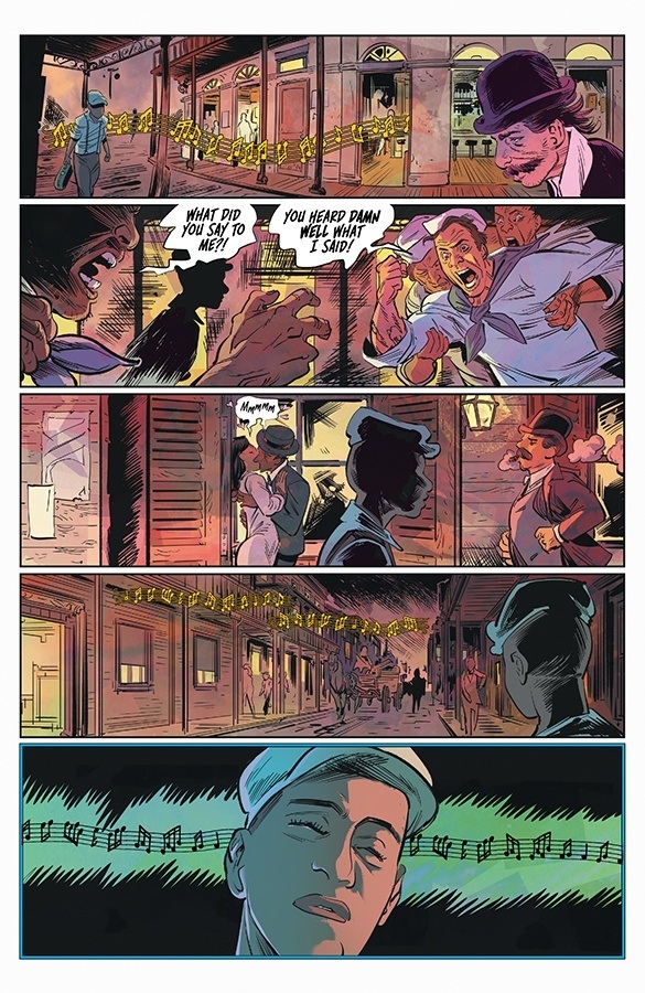 MINISERIES PREMIERENew Orleans, 1917. In the city’s bustling red-light district, a young clarinet player lands a job with his hero—but he’ll soon discover there’s more to the music business than playing the right notes.Join writers KYLE HIGGINS & JOE CLARK (RADIANT BLACK) and an ALL-STAR CAST OF ARTISTS for SIX DOUBLE-LENGTH ISSUES that weave stories of struggle, joy, and hope through the history of jazz!
