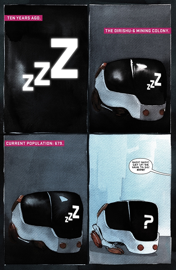"SINGULARITIES" continues as the secret history of everyone's favorite pet-bot, Bandit, is revealed. What did Bandit do on the mining colony all those years while Tim-21 slept? And what does it mean for the future?