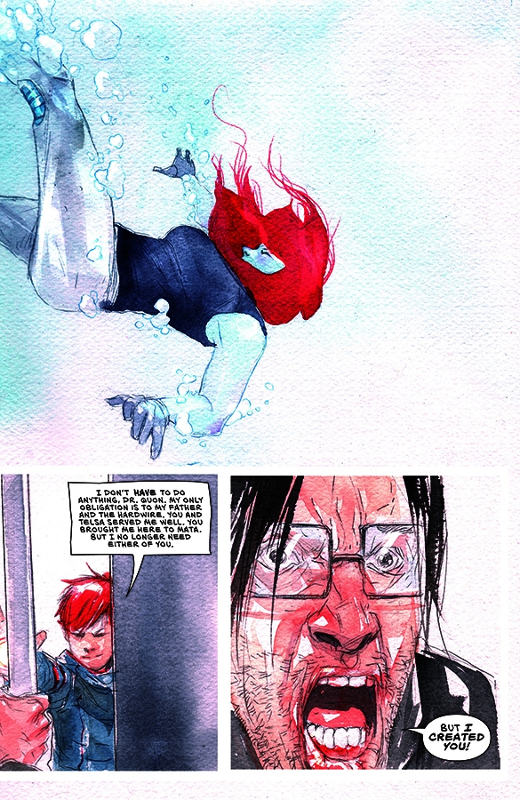NEW STORYLINE! "RISE OF THE ROBOTS," Part One THE FIRST DESCENDER EVENT STARTS HERE! Tim-22 makes his move on Telsa and Quon, Andy and Effie attack the Machine Moon, and Psius and The Hardwire have Tim-21 in their grips. As the various factions hunting Tim-21 close in, the galaxy is on the verge of all-out war. This is it! Everything DESCENDER has been building to begins to erupt in the most important and surprising DESCENDER storyline yet! This five-part DESCENDER event will include a series of interlocking variant covers by LEMIRE and NGUYEN!