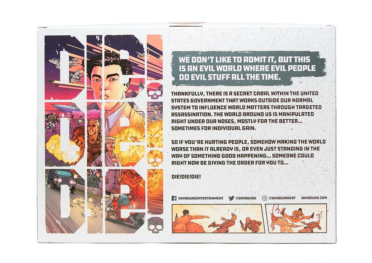 Based on the action-packed comic series created by ROBERT KIRKMAN, SCOTT M. GIMPLE, and CHRIS BURNHAM, this stealth action figure 2-pack comes loaded with a cache of weapons to help elite assassins Nate and Paul with their secret missions. This limited edition set also includes the first trade paperback of DIE!DIE!DIE! with a cool variant cover.