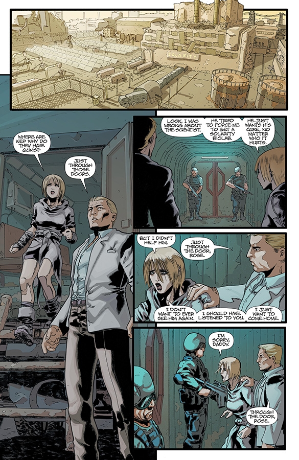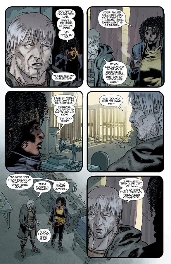 In a world where sunlight is deadly, Bax and Valerie sneak back into the city and plan to run away together, but circumstances force them to pick sides as a game of deceit unfolds between Cielo and her father over who will control the Scientist and his sunlight immunity.