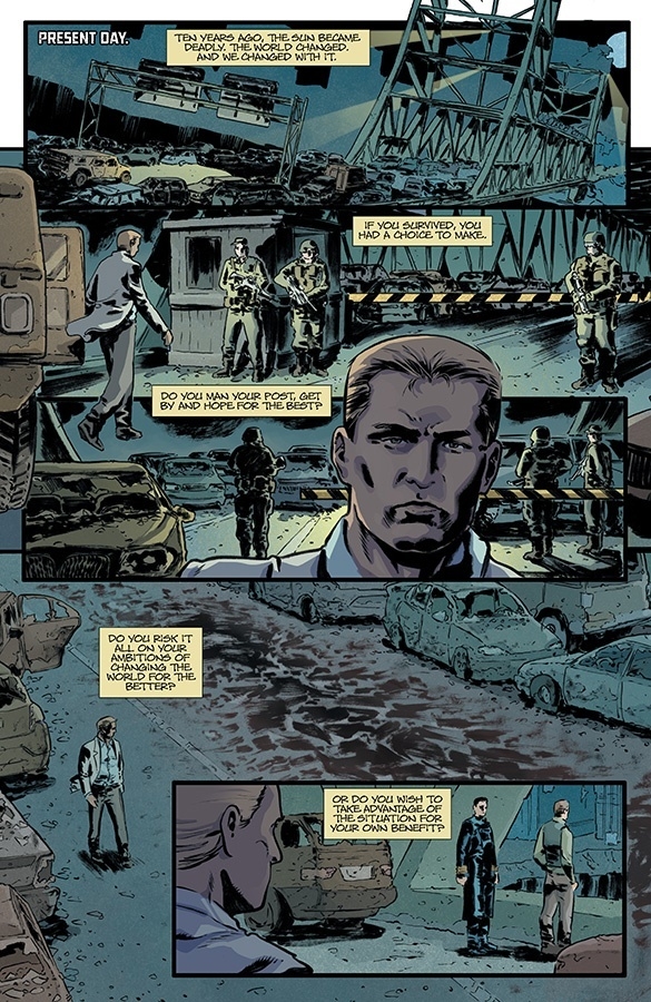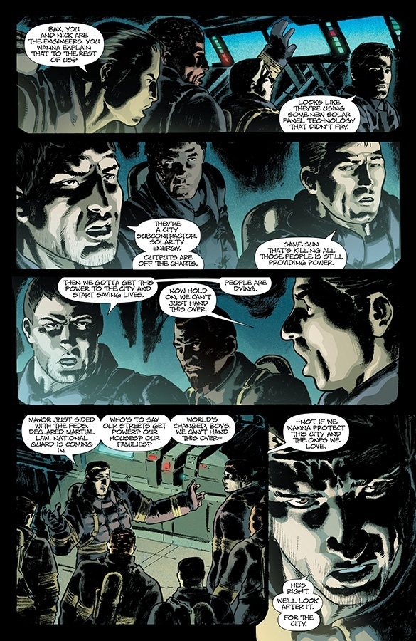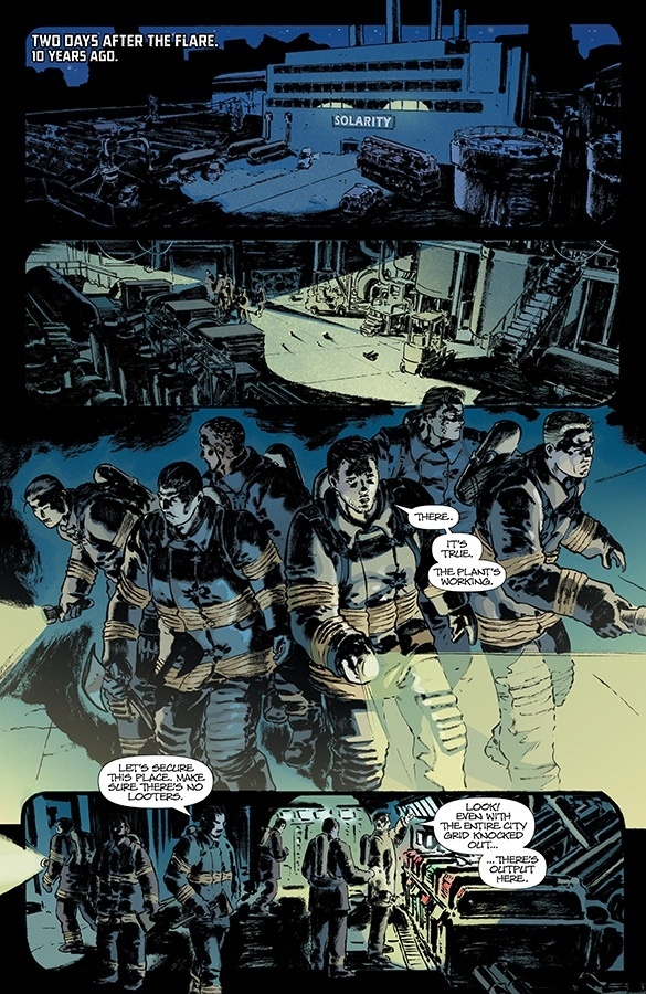 In a world where sunlight is deadly, a dangerous and bold new villain challenges the city’s true source of power, leaving Nick Brandt and the city’s solar tycoons panicked, our demoralized and defeated heroes David Baxter and Cielo Brandt threatened with peril, and the people in the streets burning.
