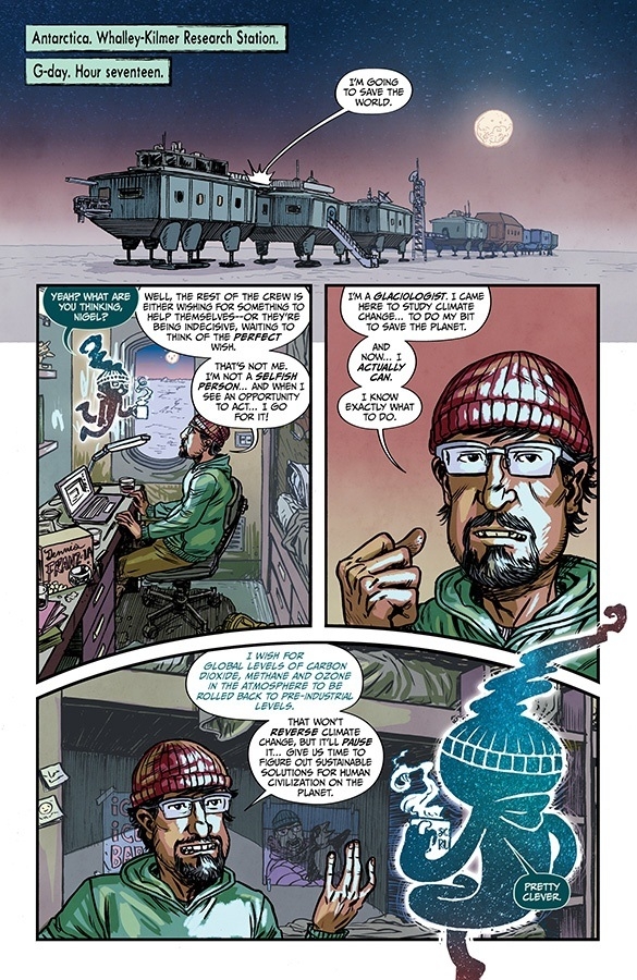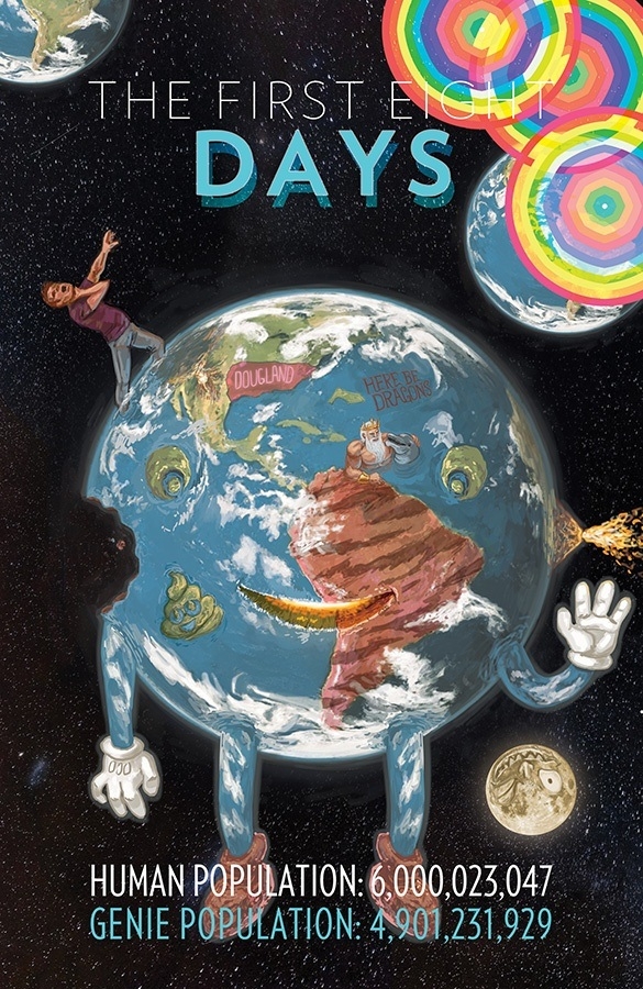 We explore the first eight days after eight billion genies appeared on earth, offering one wish each to every man, woman, and child. The wish-proof Lampwick Tavern has provided a safe haven for our eight heroes so far, but now they must undertake a crucial mission into a world utterly remade by frivolous and bizarre wishes. With a special appearance from history’s most famous drunkards!