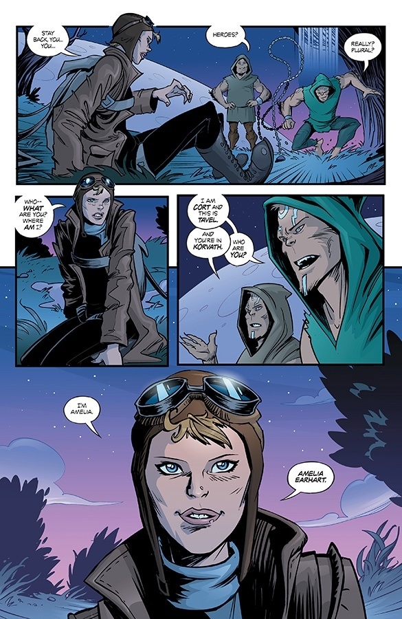COPPERHEAD WRITER JAY FAERBER TEAMS WITH RISING STAR SUMEYYE KESGIN TO UNVEIL ELSEWHERE: THE FANTASTIC STORY OF WHAT REALLY HAPPENED TO AMELIA EARHART! Mysteriously transported to a strange new world filled with flying beasts and alien civilizations, Amelia desperately struggles to return home. Along the way, she forges alliances and makes enemies as she goes from aviator to freedom fighter in a rebellion against a merciless warlord!