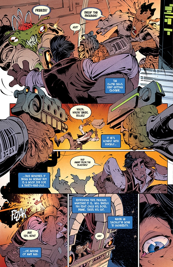 In the future, if you can’t find a decent job, you run errands—the dangerous, often illegal kind. 30-year-old Jace Lopaz is a hard-worn scoundrel and a lifelong solo act—until he’s saddled with his 13-year-old half-brother Tawnk full-time. Now Jace has two mouths to feed while evading the law, running from aliens, and jumping off skyscrapers. The only thing weirder than the vastness of space is family.